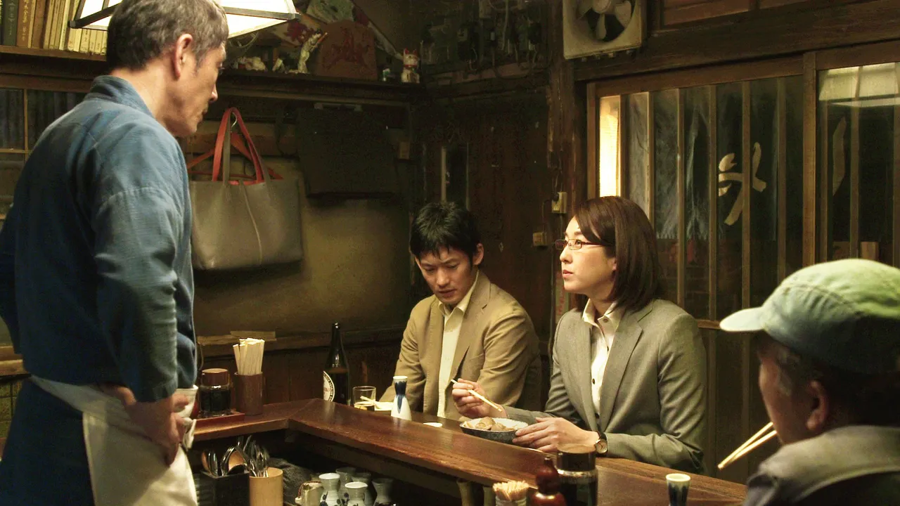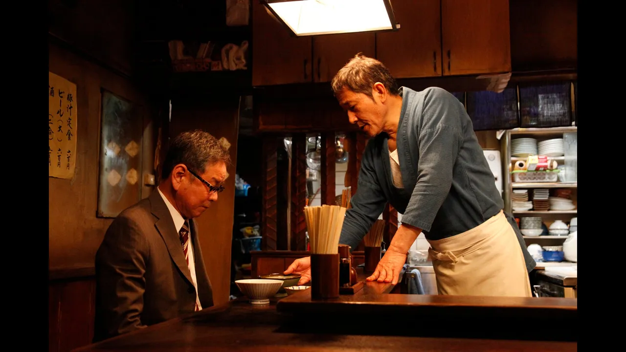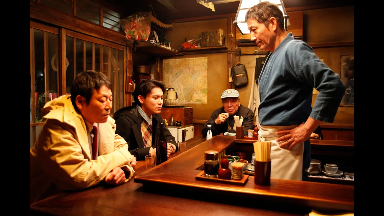 一方、食堂近くの交番では、野口(光石研)、いずみ(篠原ゆき子)、そして小暮(オダギリジョー)がマスターのうった年越しそばを食べながらともに過ごしていた。