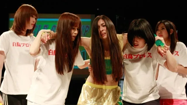 白鳥梓(市川由衣)は、小さな女子プロレス団体「白鳥プロレス」のオーナーの一人娘。しかし、その父が病死してしまう。所属選手の魚沼まい(亜耶バネッサ)、向日葵(赤井沙希)、星薫(志田光)、須藤つかさ(山本ひかる)と父の法要を営んでいると、敵対するプロレス団体「青薔薇軍」の経営者・郷原光司(水上剣星)が選手と共に現れた。郷原は、借金を抱えている白鳥プロレスを乗っ取るつもりだった。